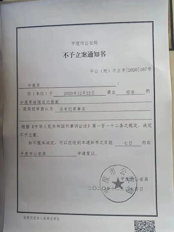 山东省平度市违法犯罪分子赖积豪、任玉洁、王阿雷、任国良等黑.恶.势.力团.伙霸.占我公司、强迫交易、敲.诈.勒.索、寻.衅.滋.事、盗.窃等违法犯罪行为,许展军控告四年无人管,遭遇公安局拒绝立案,充当黑.恶.势.力保.护.伞……