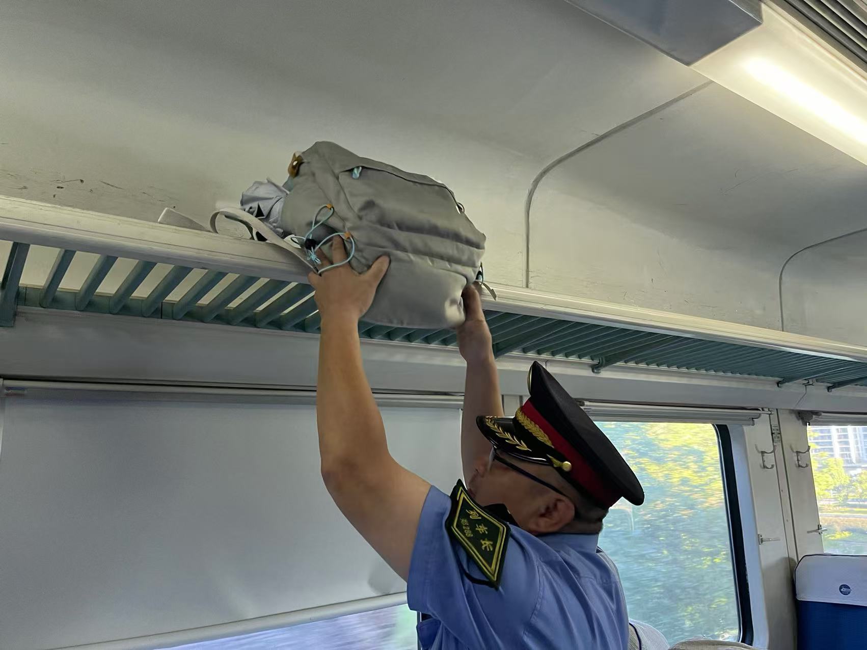 近日,一趟列车上发生了暖心一幕。在K1237次列车从郑州驶向温州的途中,列车长风雷像往常一样在车厢内进行巡视工作。当行至4号车厢时,他发现行李架上有一个双肩背包,周围却不见主人的身影。凭借经验,他判断这极有可能是旅客下车时不慎遗落的。