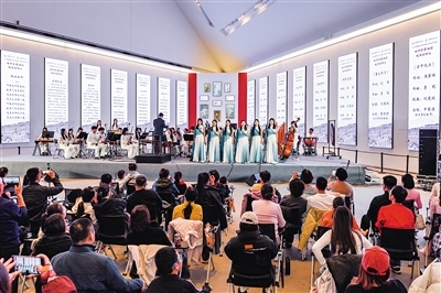 演出在男中音独唱《云中天工》中拉开帷幕。紧接着,悠扬高亢的女高音独唱《石窟幽韵》《佛阁梵境》《石破禅吟》,欢快美妙的女声小合唱《畅游云冈》,清丽悦耳的琵琶演奏《云冈妙音》先后上演,优美的旋律、悦耳的歌声,吸引了众多市民观看,赢得阵阵掌声。现场还将演出的诗词作品一一呈现,让观众在聆听音乐作品时,还可以品诗词之韵。最后,随着深沉的男中音独唱《武州寒钟》和明丽的女高音独唱《重九怀乡》的上演,将演出氛围推向高潮。一首首作品,既保留了山西民间音乐的特色,又赋予云冈文化新的艺术表达,让观众不仅尽享艺术盛宴,还加深了对云冈文化的认识与理解。